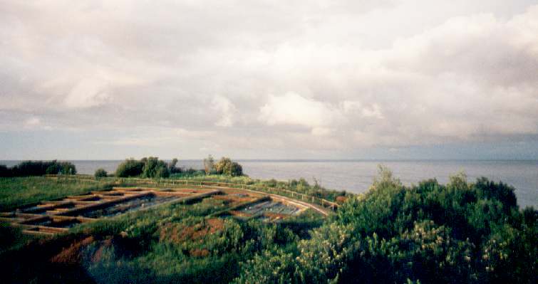 schnell im Vorbeigehen einen Kaffee trinken will, der hat Pech gehabt. Wir gehen in der Sonne spazieren. Nach links in Richtung Westen führt ein Weg oben an der Steilküste entlang. Mit Rollstuhl ist das eine sehr beschwerliche Wanderung, denn es ist ein steiniger, unbefestigter Feldweg. Ausserdem geht es bergab. Das Kap Arkona liegt ca. 30 bis 40 Meter über dem Meer. Wir laufen auf diesem Weg nicht weit, denn ich muss den Rollstuhl ja auch wieder nach oben schieben. Wir machen an einer Stelle, wo man weit über das Meer sehen kann, eine Pause und geniessen diese schöne Sicht auf die Ostsee mit zwei einsamen Segelschiffen. Salzwasser! sagt Peter. Das ist wieder so ein Moment, wo ich meinen Ohren nicht traue. Wo weiss er her, dass das da unten wirklich Salzwasser ist? Aber er hat mich heute schon mal so überrascht: Als der Film in meinem Fotoapparat alle war, kam von ihm die Bemerkung Sechsunddreissig voll !! Woher weiss er, dass ein Film 36 Bilder hat? Als ich ihm erzählte, dass wir im nächsten Jahr vielleicht mal an die Mosel fahren, sagte er: Zweitausend !! Neunzehn ist Schluss !! Er weiss also, dass die Jahrtausendwende bevorsteht. Fernsehen bildet. Das kann man hier exemplarisch sehen. |