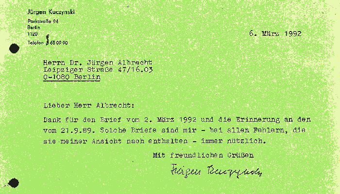 Ich würde mich sehr gerne einmal mit Ihnen zu diesen Problemen auseinandersetzen. Es ist sehr schade, daß Sie meinen Brief vom 21.09.1989 nicht beantwortet haben. Ich habe die Situation damals ähnlich, aber viel zu emotional gesehen. Es gehörte aber im Gegensatz zu heute Mut dazu, das auch aufzuschreiben. Sie haben das damals sicher als unverschämte Kritik eines inkompetenten Technikers angesehen und sehen das vielleicht heute auch noch so. Das ist Ihr gutes Recht. Ich dagegen bin davon überzeugt, daß einer der höchsten Werte des jetzigen Systems der Pluralismus ist. Damit habe ich auch das Recht, anderer Meinung als Sie zu sein. Aber das beste dabei ist, es gibt nur einen Schiedsrichter in dieser Sache: