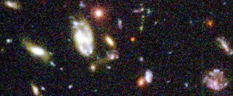 Damit man eine Vorstellung hat, wie klein dieser Bildausschnitt ist, habe ich die Stelle mit SkyMap geortet (Bild unten). Sie liegt etwas nördlich von der Deichsel des Großen Wagens. In der Zeichnung habe ich Telradkreise an dieser Stelle positioniert. Sie kennzeichnen einen Öffnungswinkel von 0,5, zwei und vier Grad. 0,5 Grad sind 30'. Das beobachtete Feld ist etwas breiter, als ein Zehntel des Durchmessers des kleinsten Kreises !! Wenn man mit einer Stecknadel vorsichtig ein Loch in den kleinen Kreis sticht, dann hat man ungefähr das Deep Field Fenster! Wird diese Region vergrößert, sind mit meinem System dort nur noch 4 Sterne der 11. Größenordnung vorhanden. Das muß richtig sein, denn nach diesem Gesichtspunkt wurde diese Position ausgesucht: Möglichst keine Sterne und keine anderen Objekte in der Umgebung. Was man auf dem Hubble Foto dieses Ausschnittes sieht, erinnert mich an die Faszination, die ich beim ersten Schnorchelgang über dem Korallenriff in Perhentian verspürte: Eine ganz andere Welt, hoch komplex, farbig, vielgestaltig und ... der Mensch wird hier nicht gebraucht, er wird überhaupt nicht zur Kenntnis genommen. Mich interessiert nur noch eine Frage: Gesetzt den Fall, wir könnten den Bildausschnitt noch um den Faktor 1.000.000 verkleinern, was sehen wir dann? Diese Frage interessiert nicht nur mich, sondern in erster Linie alle Astro Wissenschaftler, besonders die am Hubble Teleskop. Die Antwort auf diese Frage sagt uns, ob das Universum ein Ende hat, oder nicht. Jetzt geht man davon aus, es ist endlich. Aber das ist eine Hypothese. Es könnte sein, daß wir dann wieder genau so ein Bild mit vielen Galaxien sehen: Man kann endlos zoomen, es gibt keine schwarze, leere Fläche. Und wenn es sie gäbe: Was ist das, und was ist dahinter ??! |