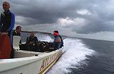 Auf der Hinfahrt eine Flaute, aber bis zum Mittag haben wir die Insel