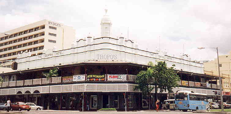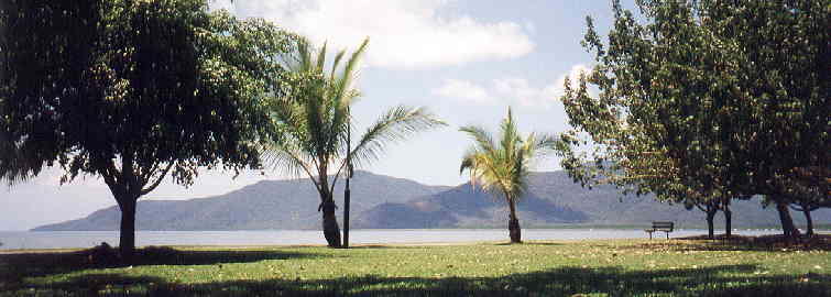 Es ist 13 Uhr und ich sitze unter den alten Bäumen der Promenade von Cairns. Hinter mir die belebte Geschäftsstrasse, die Traveller-Szene und der Nightmarket, vor mir die See. Gerade startet links eine Boing 707 vom Airport Cairns. Sie schraubt sich über dieser Beach in einer langen Schleife in die Luft. Es ist Ebbe. Viele Wasservögel stochern im Schlick des Wattenmeeres herum. Reiher, Möwen und kleine, schwarze Enten. Im Hintergrund Berge, an denen nur ganz rechts immer noch die Wolken des Morgens hängen. Aber es gibt heute auch sehr hohe Wolken, sie sind eigenartig strukturiert, sehen wie Stofffetzen mit ausgefransten Rändern aus. Direkt gegenüber der Promenade auf der rechten Seite der PIER, ein grosser Shopping- und Hotelkomplex. Die Skyline von Cairns aber bestimmen die Hotels hinter mir. Es sind ca. 10 Hochhäuser mit bis zu 20 Stockwerken. Gestern abend habe ich gesehen, dass sie höchstens zu 10 % ausgebucht sind. Deshalb wird überall mit Discount-Angeboten geworben, aber unter 60 $/night ist nur bei Budget Accommodations etwas zu haben.