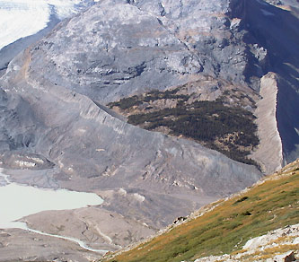 Fuss des Athabasca Glacier mit dem Sunwapta Lake