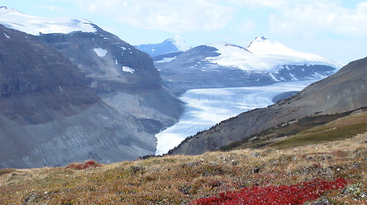 Der Saskatchewan Glacier vom Top des Parker Ridge Trail - am 30.08.2001