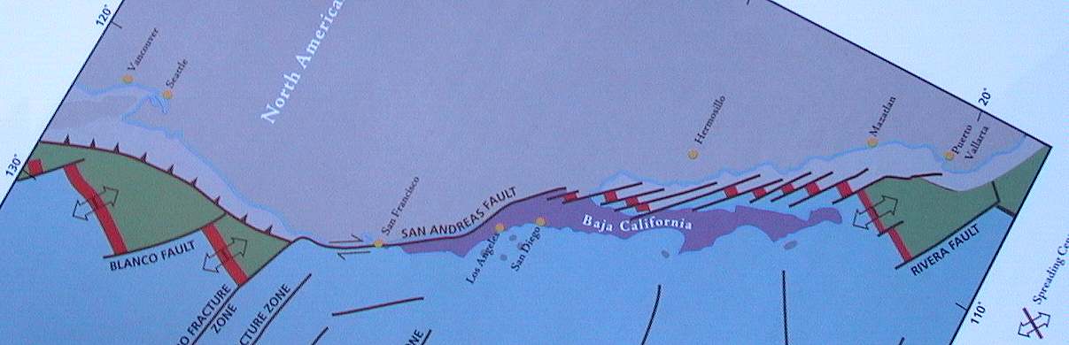hoch komplex, dreidimensional und es umfasst die gesamte Westküste Nordamerikas von Vancouver Island in Canada, über San Francisco, Los Angeles bis weit nach Mexico. Die gesamte Baja California ist Bestandteil der pazifischen Platte. Die Bewegungen der Platten kann
