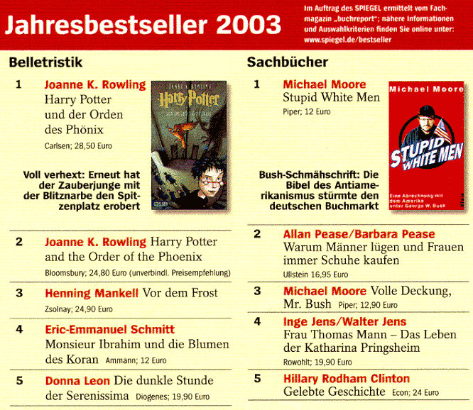 Bestseller Listen - DER SPIEGEL, Nr. 1 /29.12.2003