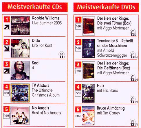 Bestseller Listen - AudioVideoFoto-Bild 2 /08.01.2004