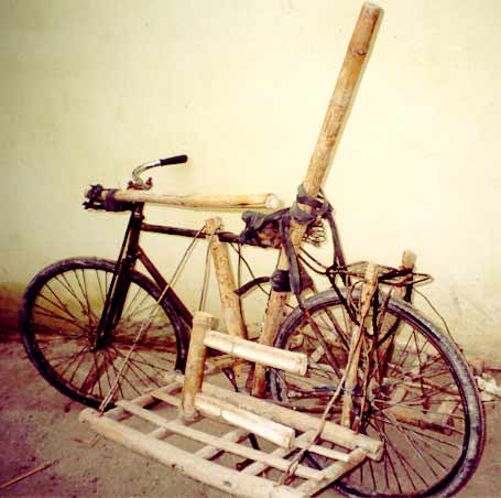Ein fünfjähriger Junge rennt bei dicht in beiden Richtungen fließendem Mopedverkehr schräg über die Eisenstraße. Den Verkehr um ihn herum scheint er nicht zu bemerken. Mir stockt der Atem. 'Im nächsten Moment wird er gleich dreimal hintereinander überfahren', denke ich. Was passiert? Nichts. Dieses Verkehrssystem verkraftet solche Situationen. Die Geschwindigkeit ist relativ gering und jeder rechnet ständig mit einem abrupten Kurswechsel. Unter Mittag testen wir unsere neue Erkenntnis: Ich laufe langsam aber zielstrebig quer über die große, belebte Kreuzung an der Eisenstraße, auf der sich vier Verkehrsströme durchdringen !! Scharno filmte das Experiment mit der Videokamera. Das ist der Beweis und es zeigt, wie man so etwas gefahrlos macht: Man muß stetig, unbeirrt und gerade laufen und sich absolut nicht um den Verkehr kümmern. Für alle ist dann zu erkennen, womit zu rechnen ist. In 99,99% aller Fälle passiert nichts. Darauf sind hier alle geeicht. Es ist 21:15 und der Tag geht zuende. Ich verabschiede mich von Van, Lan und der Schwägerin und laufe durch die lange Straße, an der Hochschule vorbei, zum Hotel zurück : Viel Dreck, viel Lärm, keine Straßenbeleuchtung. Die Hälfte der Geschäfte sind noch offen. Wer will, der kann auch jetzt noch eine Stahlplatte von drei Quadratmetern hier kaufen, fünfzig Meter Aufzugsseil, ein altes Baggergetriebe, ein Differential vom W-50 oder einen mannshohen Hydraulikzylinder. Es könnte ja gerade jetzt einer kommen, der genau das sucht und braucht. Schlechte Wege für Fußgänger, wenn überhaupt. Pfützen vom gestrigen Gewitter. Keine Kanalisation, alles läuft in ein kleines Nebenflüßchen des Red River. Was nicht alleine läuft, wird hingefahren und reingekippt. Jetzt am Abend leeren alle ihre Mülleimer auf der Straße aus. Straßenkehrer (mit Mundschutz, meistens Frauen) schippen das Zeug in große Müllkarren. Die werden in der Nacht von einem Müllauto geleert. Wohin das dann gefahren wird - sicher in den Red River oder auf eine Mülldeponie mit Grundwasserdichtung nach DIN-1234!? Viele Mopeds mit aufgeblendetem Licht sind unterwegs. Alle Fahrräder unbeleuchtet. Die wenigen Motorräder fahren mit 50 oder 60 km/h in diesem Gewühl. Artistische Einlagen nach rechts und links. Es ist faszinierend, daß fast nichts passiert. Wir haben bisher nicht einen Verkehrsunfall, aber tausende Beinah-Unfälle gesehen.