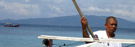 nicht in den Hafen, sondern zu einer Anlagestelle für Bancas (Auslegerboote).